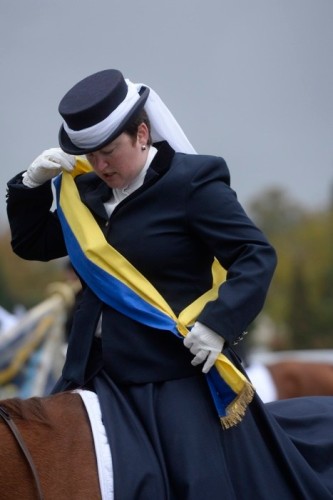 Schon am Vormittag fanden sich Kutschen und Gespanne ein. Das Geklapper von Hufen war dann um die Mittagszeit zu hören. Die Reiter kamen mit ihren Pferden an, die teils kunstvoll geflochtene Mähnen und Schweife zeigten. Schöne Gewänder der Reiterinnen und Reiter zogen ihre Blicke auf sich.